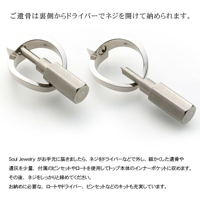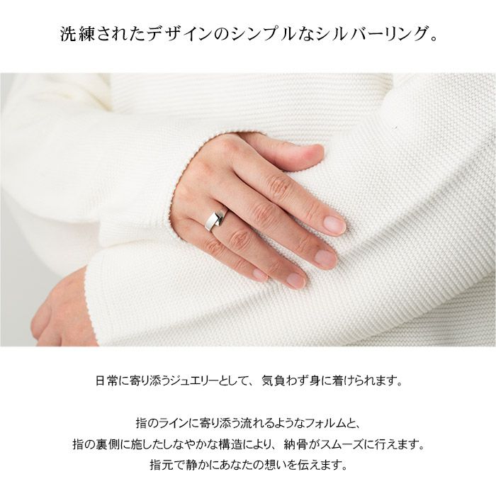 シンプルに、大切な想いを指元に。洗練されたデザインのシンプルなシルバーリング。ご遺骨は裏側からドライバーでネジを開けて納められます。
