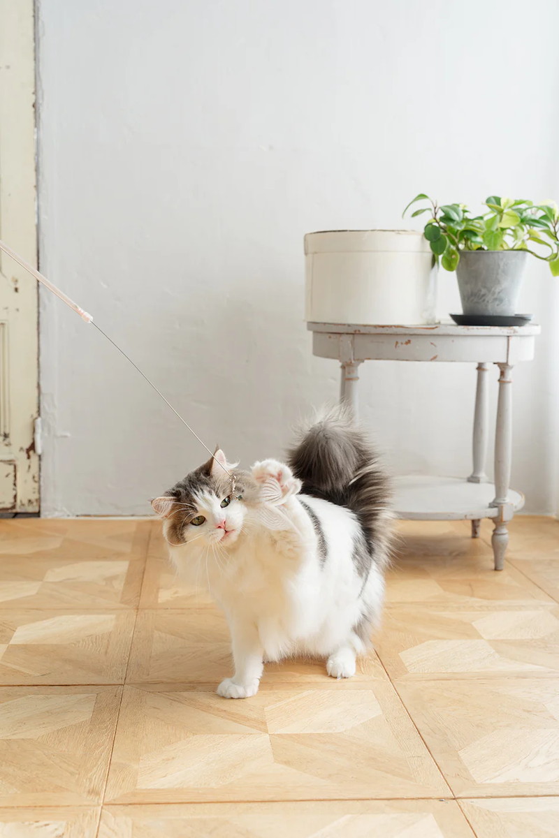 本物の羽ならではの質感が好奇心をくすぐる、本格派の猫じゃらし。