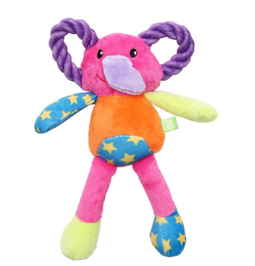 「ループ バブー」は、優しい触り心地のスクィーカー入りぬいぐるみ系おもちゃのシリーズです。「バブー ルビー」は、目に鮮やかなビタミンカラーのゾウさん型ぬいぐるみにスクウィーカーが入っています。耳はTシャツ生地を編んだロープになっています。柔らかいおもちゃが好きなワンちゃんにおすすめです。【注意事項】・本製品は犬用おもちゃです。本来の用途以外には使用しないでください。・誤飲やいたずらを防ぐため飼い主様の目の届く場所で使用し、壊れかけた場合は直ちに使用を中止し新しいものに交換してください。・飲み込んでも害のない素材を使用していますが、万一誤飲した時は獣医師に相談してください。・おもちゃを投げて遊ぶときは、周囲の安全を十分に確認してください。・幼児やペットの手の届かない場所に保管してください。