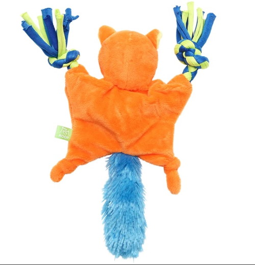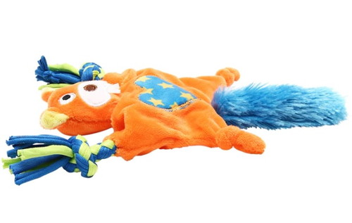 「バブー レプル」は、目に鮮やかなビタミンオレンジのモモンガ型ぬいぐるみにスクウィーカーが入っています。