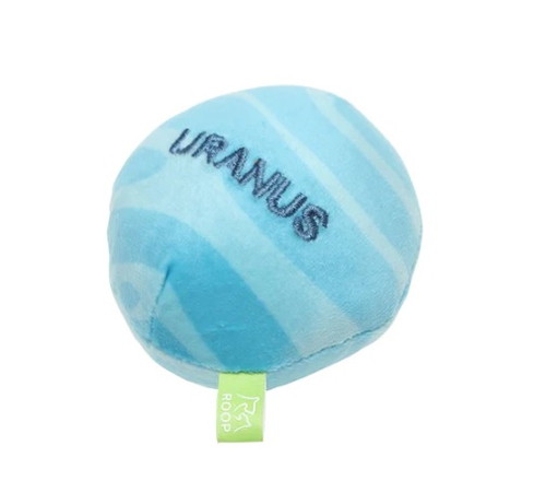 「ループ スモル」は、手のひらサイズの小さくて可愛いぬいぐるみ系おもちゃです。「プラネット」シリーズには、太陽系惑星に月を加えた10種類のデザインがあります。正面に星の英語名が刺繍してあり、中にはスクウィーカーが入っています。URANUS(ユラナス)は、淡い青色の天王星をイメージして作られています。【注意事項】・本製品は犬用おもちゃです。本来の用途以外には使用しないでください。・誤飲やいたずらを防ぐため飼い主様の目の届く場所で使用し、壊れかけた場合は直ちに使用を中止し新しいものに交換してください。・飲み込んでも害のない素材を使用していますが、万一誤飲した時は獣医師に相談してください。・おもちゃを投げて遊ぶときは、周囲の安全を十分に確認してください。・幼児やペットの手の届かない場所に保管してください。