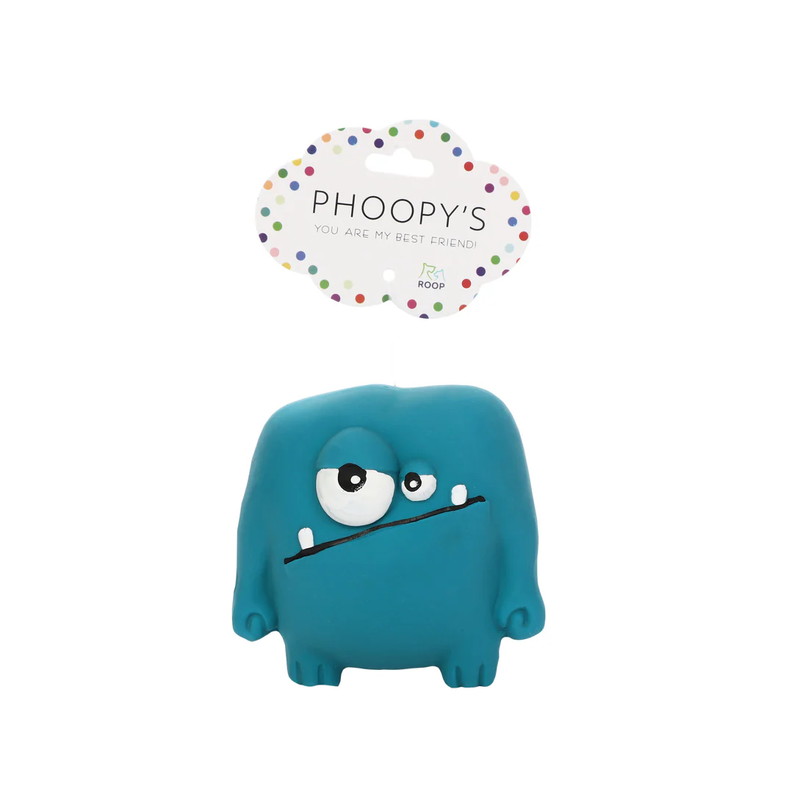 「プーピーズ パンキー ブルー」は、踏ん張っているような表情がユニークなモンスターのゴムおもちゃです。