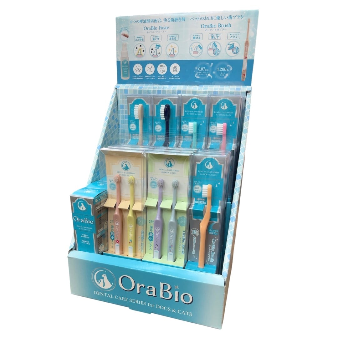 トリミングサロン・動物病院・ペット専門店様向け、1店舗1台限りのオーラバイオ展示台付き導入セット。 <4大特典> 特典1 通常販売価格から18%OFF 特典2 飼い主様向けリーフレット20部 特典3 オーラバイオブラシ テスター歯ブラシ5本付き 特典4 オーラバイオ専用展示台1台付き 全国500台限定セットの為1店舗1台限りの注文とさせていただきます。