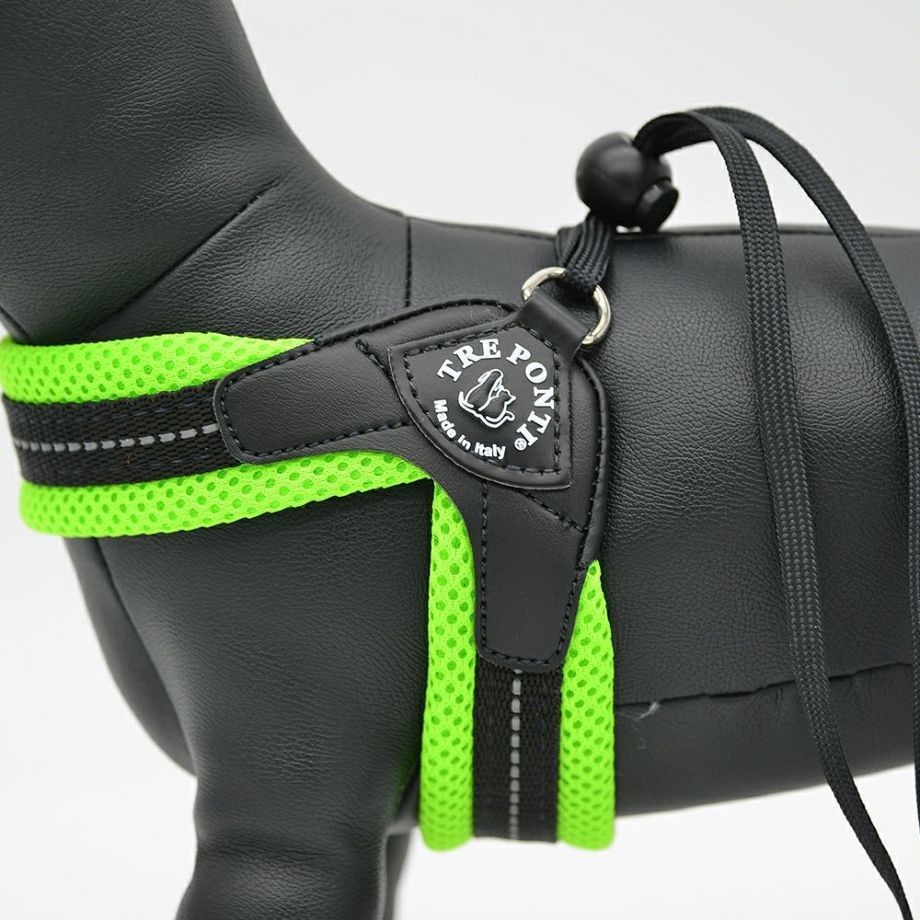 柔らかいメッシュ生地を使用した、負担になりにくい設計のコードロックタイプのハーネス。ビビットなカラーが目を引きます。 小型犬用に設計されたハーネス。ストラップの先端リングにリードを付けて使用します。調節可能なストラップでリラックスした状態を保ちますが、犬が引っ張ったり飼い主がリードを引いたりするとハーネスが締まり、体に密着します。パピーやトレーニングでの使用もおすすめ。 柔らかく触り心地の良いソフトメッシュ生地は軽くて通気性があり負担になりにくく、光を反射するリフレクト素材の糸が編み込まれてるので夜間のウォーキングにも最適です。リベルタシリーズは猫にも使用可能です。