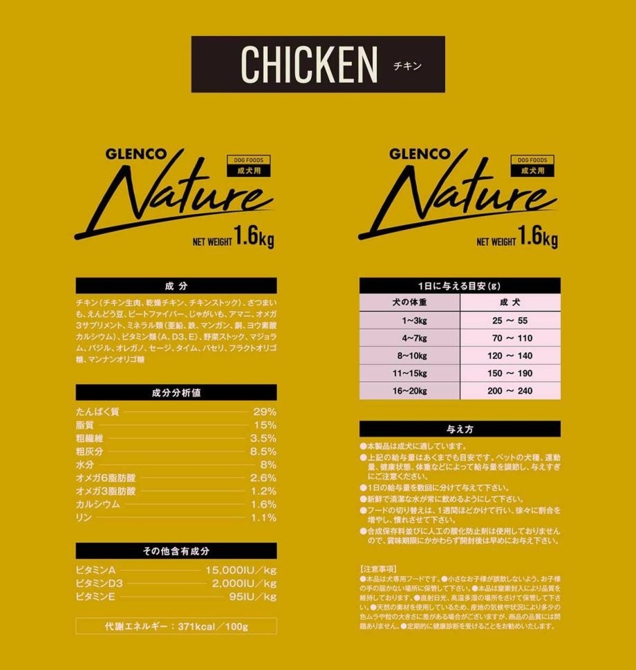 グレンコ ナチュール グレインフリー アダルト 小粒 チキン 1.6kg