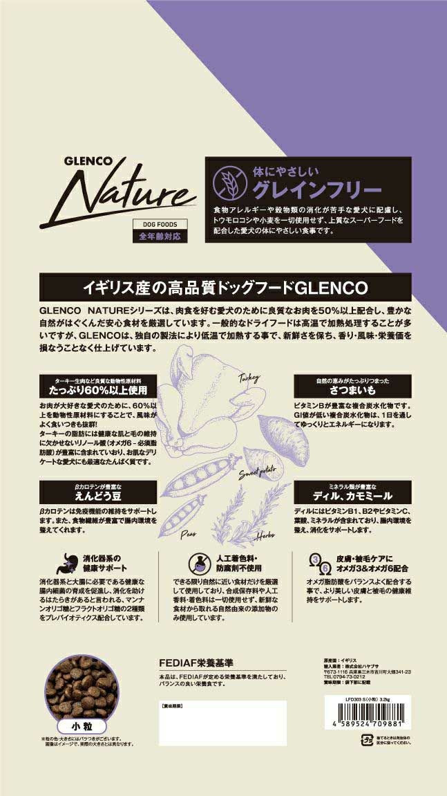 グレンコ ナチュール グレインフリー 小粒 ターキー 800g