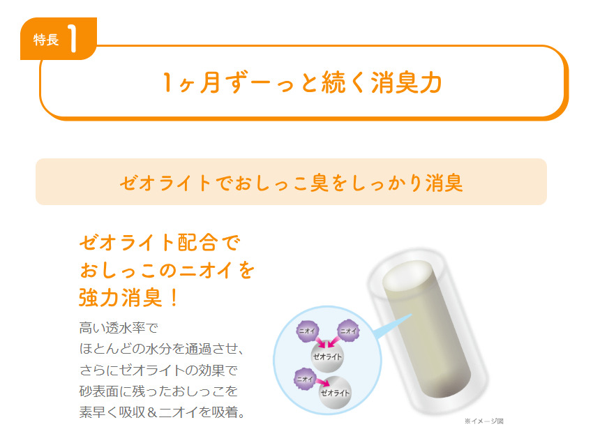 ゼオライト配合でおしっこのニオイを強力消臭!