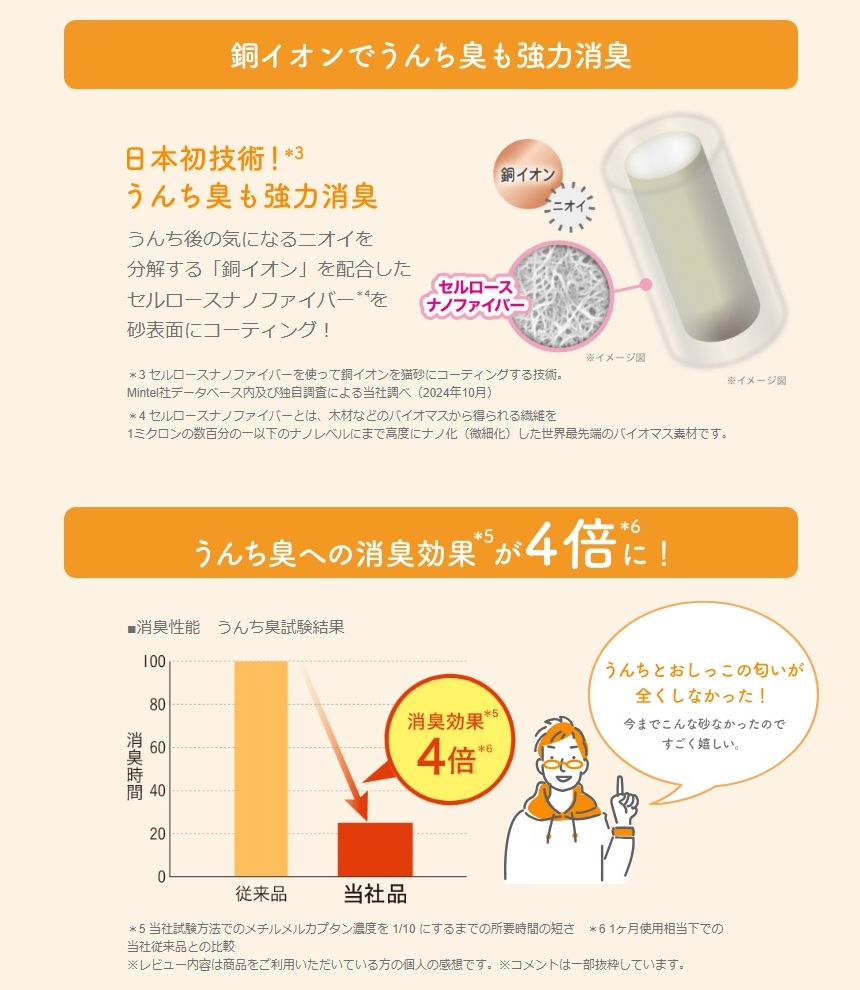 ●うんち後の気になるニオイを分解する「銅イオン」を配合した、セルロースナノファイバー*5を砂表面にコーティング!