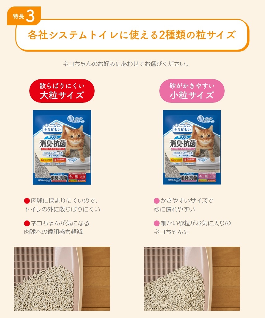キミおもい パワフル消臭・抗菌 システムトイレ用ネコ砂 大粒 4L