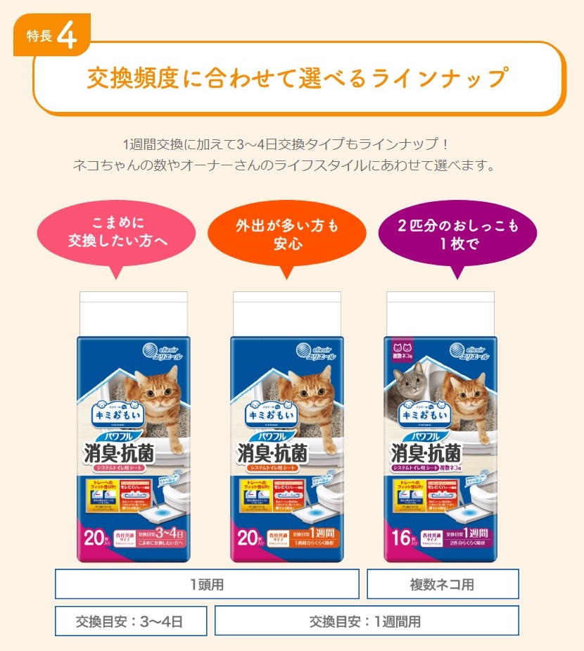 ●1週間交換に合わせて、3~4日交換用もラインナップ! ●ネコちゃんの数やオーナーさんのライフスタイルにあわせて選べます。