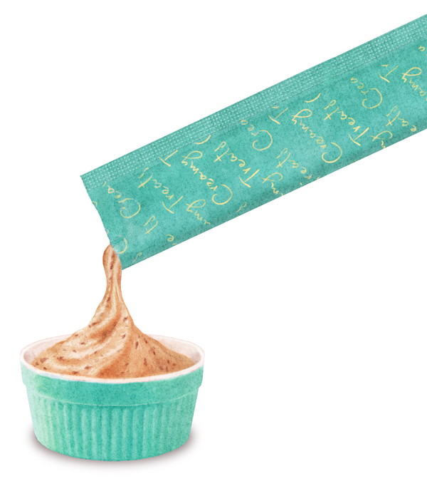 厳選自然素材を主原料に100%使用。お肉やお魚など、素材のおいしさがお口いっぱいに広がるクリーミータイプのおやつ。
