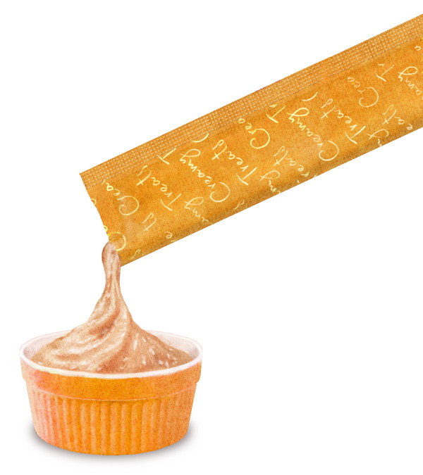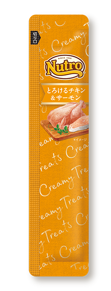 厳選自然素材を主原料に100%使用。お肉やお魚など、素材のおいしさがお口いっぱいに広がるクリーミータイプのおやつ。