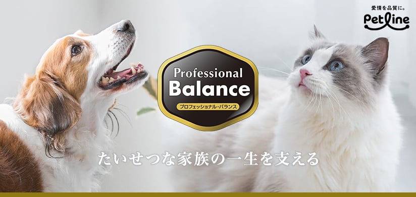 LBSカルチャー配合 LBSカルチャー(乳酸菌・納豆菌・酵母菌の共棲発酵培養物)や、抗酸化成分の“ビタミンEとC”を配合。 優れた栄養バランスで愛犬の健康を維持し、本来もっている免疫力を保ちます。 健康で輝く毛並みに プロフェッショナル・バランスでは、健康で輝く毛並に配慮して「米胚芽油」に加えて「DHA」と「EPA」を配合。 皮膚・被毛の健康維持をサポートします。 下部尿路の健康維持 おしっこの悩みを抱える愛犬は少なくありません。 プロフェッショナル・バランスはマグネシウムの含有量を調整するとともに、ミネラルバランス、栄養成分を調整することで尿pHを弱酸性にコントロール。 ストルバイト尿石(マグネシウム由来の結石)に配慮しています。 ※尿pHコントロールについては「エクストラケア アレルゲンケア&pHコントロール 健康的な消化をサポート」シリーズのみの特徴となります。 食物アレルギーに配慮 主なたんぱく源に魚と米を使用、食物アレルギーに配慮しています。 ※たんぱく源が2種のラインナップは「エクストラケア アレルゲンケア&pHコントロール 健康的な消化をサポート」となります。その他の製品は対応しておりませんのでご注意ください。 健康的な消化をサポート 消化に優れた原材料を選ぶことで、健康的な消化を維持します。 嗜好性に配慮した国産ブランド フードの「おいしさ」を追求するため、専門の研究施設で嗜好性のテストを実施。 幅広い犬種に好まれる味を開発しました。 また、ISO22000の国際規格に基づいて、生産の各工程で厳しい品質基準を設け、入念な品質管理体制のもと日本国内の工場で製造しています。 各ライフステージに対応したラインナップ。愛犬の年齢、健康状態に合わせてお選びいただけます。