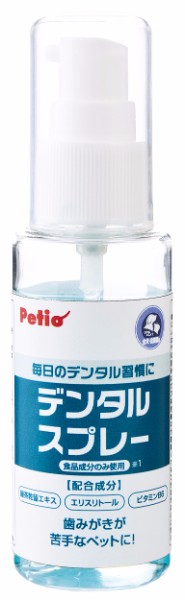 スプレーするだけで簡単にデンタルケア。ストレート状に噴射されるので噴射口が口中に直接ふれず衛生的。小型犬や猫等の狭い口中にも最適!食品への使用が認められている成分を配合。
