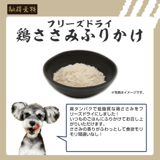 ささみの旨味と香りと栄養をそのままギュッとフリーズドライにして閉じ込めました。