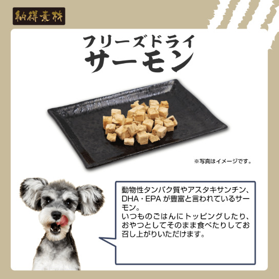 サーモンの旨味と香りと栄養をそのままギュッとフリーズドライにして閉じ込めました。