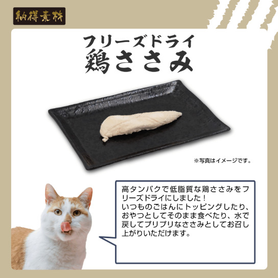 ささみの旨味と香りと栄養をそのままギュッとフリーズドライにして閉じ込めました。