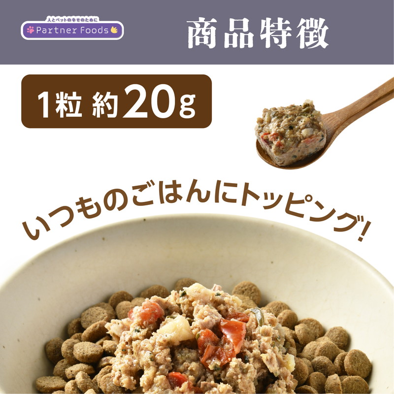 リニューアルポイント① 20g×6粒だから、与える量が調整しやすい! トッピングしやすい! リニューアルポイント② チャック付きだから保存しやすい!