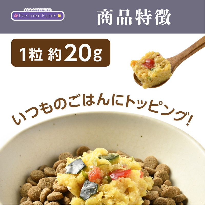 リニューアルポイント① 20g×6粒だから、与える量が調整しやすい! トッピングしやすい! リニューアルポイント② チャック付きだから保存しやすい!
