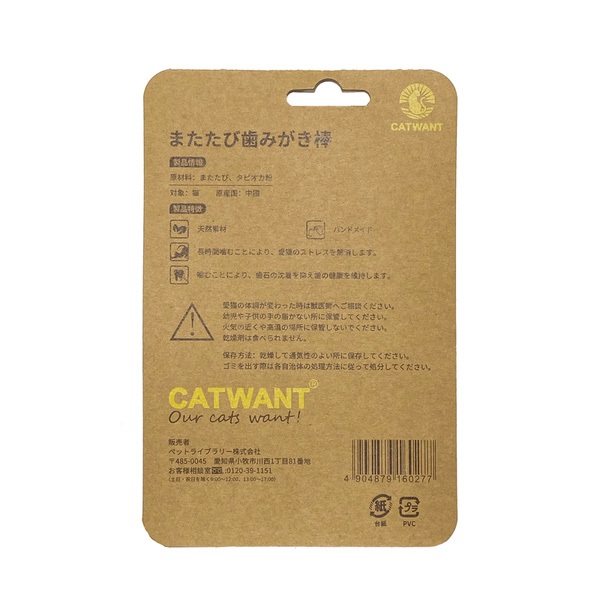 猫ちゃんが噛むことで、デンタル効果も期待できます。猫ちゃんが両手でつかみやすいので、転がしながら遊べます。またたび好きな猫ちゃんへ!