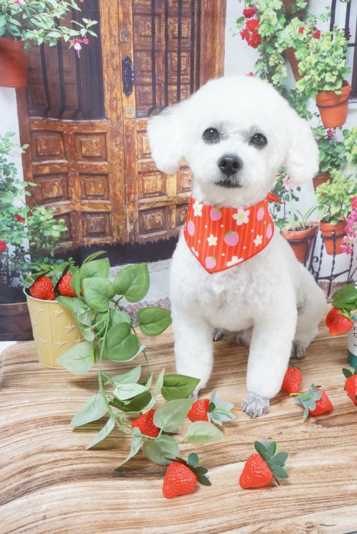イチゴの白いお花とあまーいイチゴ柄のバンダナです♪