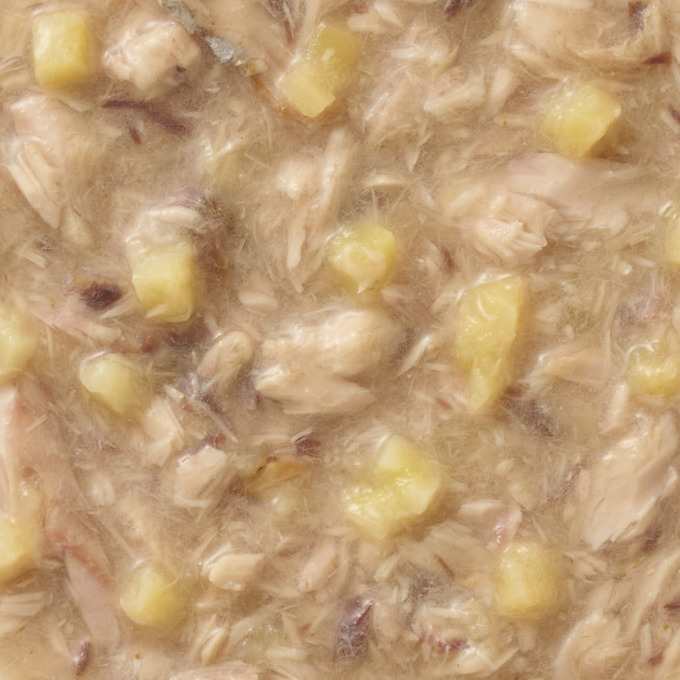 まぐろをフレーク状にほぐし、さつまいもを加え、食べやすいとろみタイプに仕上げました。