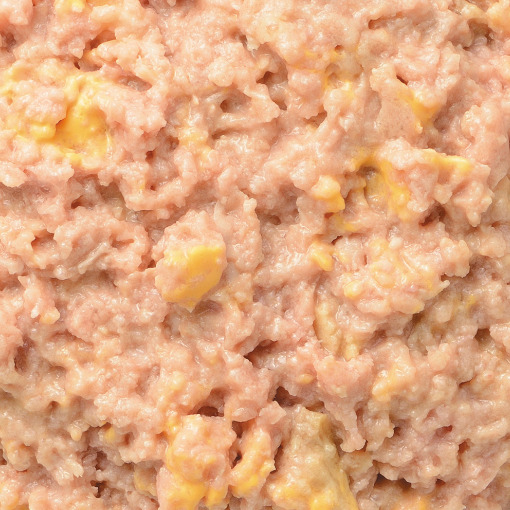 鶏肉と鶏ささみにカルシウムを含むチーズを加え、食べやすいミンチ状に仕上げました。