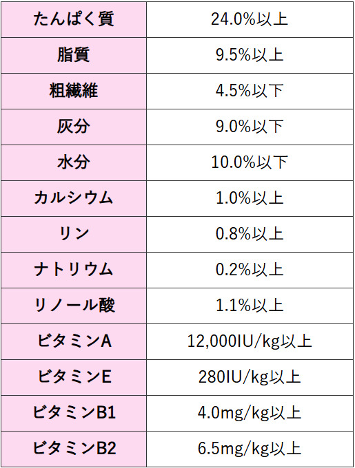 ・他の商品を混ぜて与える場合は、栄養バランスをくずさないために2割程度にとどめてください。