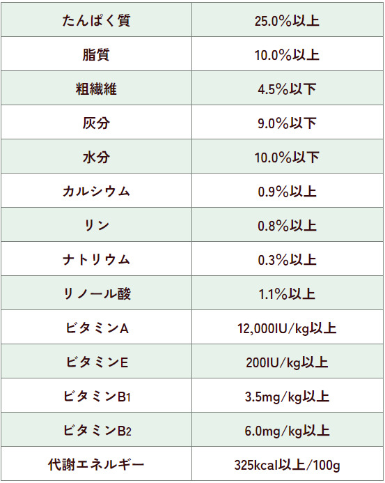 ・他の商品と混ぜて与える場合は、栄養バランスをくずさないために、2割程度にとどめてください。