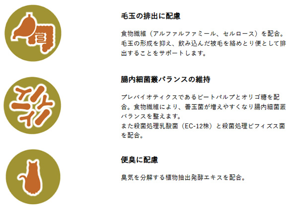 アルファルファミールとセルロースを配合し毛玉の形成を抑制、便からの排出をサポート