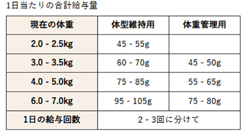 ・他の商品を混ぜて与える場合は、栄養バランスを崩さないために、2割程度にとどめてください。 ・新しい食事に慣れにくいときは、従来の食事に2割ぐらい混ぜて与えます。徐々に増やしていけば、数日で自然に切り替えることができます。 ・前日の残りフードは取り除いて新しいフードをお与えください。