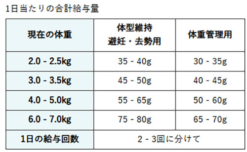 ・他の商品を混ぜて与える場合は、栄養バランスを崩さないために、2割程度にとどめてください。 ・新しい食事に慣れにくいときは、従来の食事に2割ぐらい混ぜて与えます。徐々に増やしていけば、数日で自然に切り替えることができます。 ・前日の残りフードは取り除いて新しいフードをお与えください。