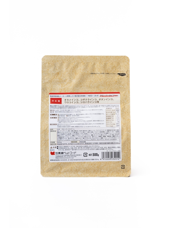 オウム目、スズメ目飼鳥に推奨される飼料100gあたりの栄養含有量(成鳥の維持量)における脂肪量は4%なので、NEO クローバータイプはその数値を少し下回り、ヘルシーなペレットとなっています。