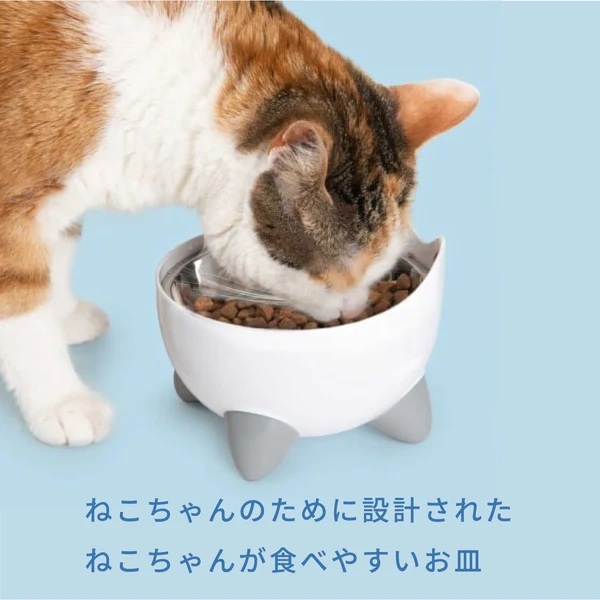 ・食べる位置を高くすることで、首に負担をかけず、ねこちゃんが楽に食べられます。
