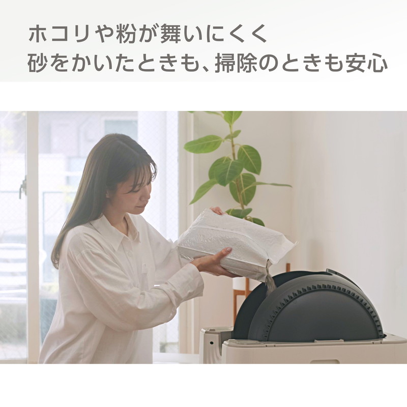 ■ホコリや粉が舞いにくく砂をかいたときも、掃除の時も安心。