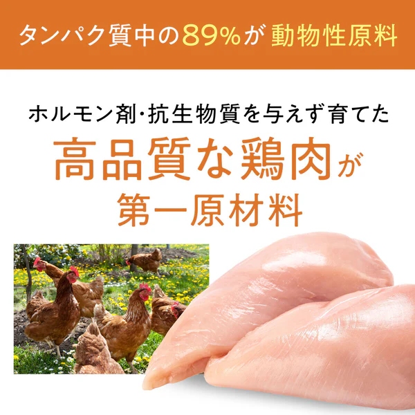 ホルモン剤・抗生物質を与えず育てた高品質な鶏を第一原材料として使用し、動物性タンパクを豊富に含みます。
