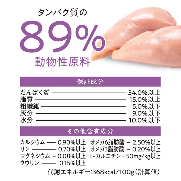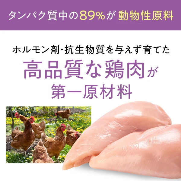 新鮮な鶏肉を使用した高タンパクのレシピで、成猫が必要とする動物性タンパクを効果的に供給します。