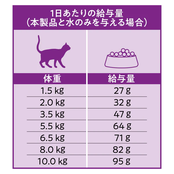 猫の種類・性別・運動量・環境などによって必要な食事量は変動しますので、必要に応じて調整してください。