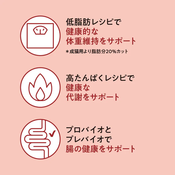 低脂肪レシピで健康的な体重維持をサポートします。(ADULTより脂肪分20%カット)