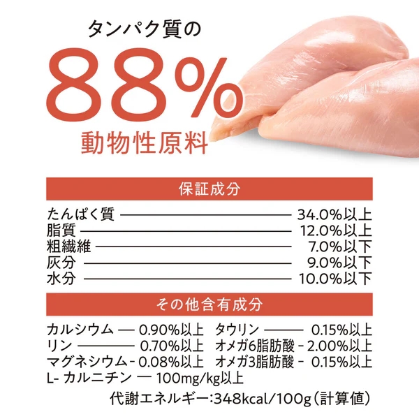 新鮮な鶏肉を使用した高タンパクのレシピで、成猫が必要とする動物性タンパクを効果的に供給します。
