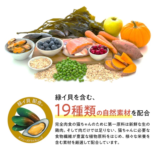 愛猫の健康を考えて、19種類の高品質の自然素材を贅沢に配合