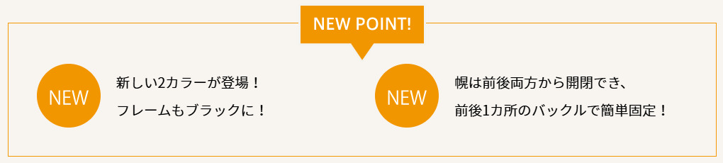 新色モデルでは、前後の幌を閉じるときにバックルで簡単に固定できます。