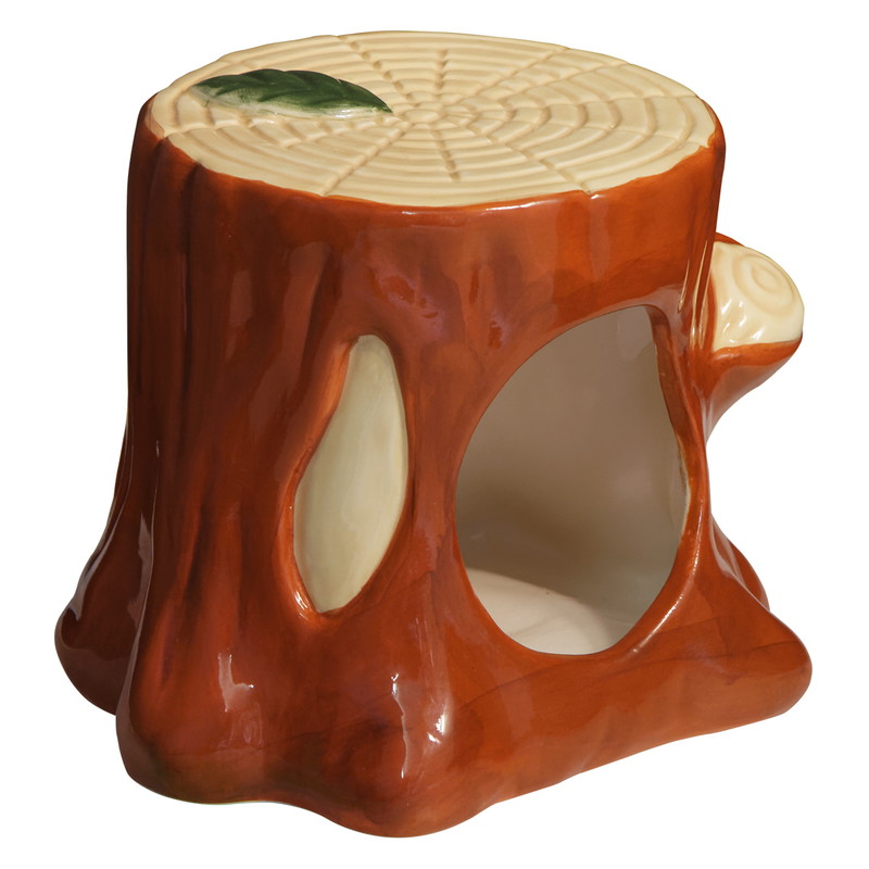 夏涼しく、冬あたたかい陶磁器製のハウスです。陶磁器製だからおそうじも簡単!いつも清潔に保てます。切株の洞からのぞく顔、かわいい寝顔も素敵でしょう。