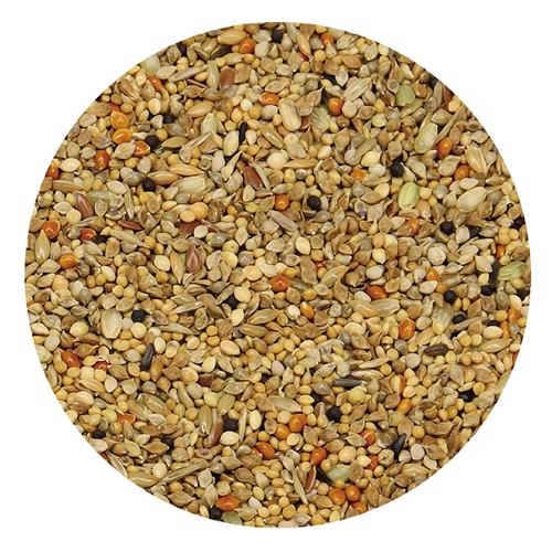 良質な種子類を集めたバランスの取れた配合で、副食品をあわせて与え、豊かな食事ができるように仕上げた小鳥のための主食フードです。