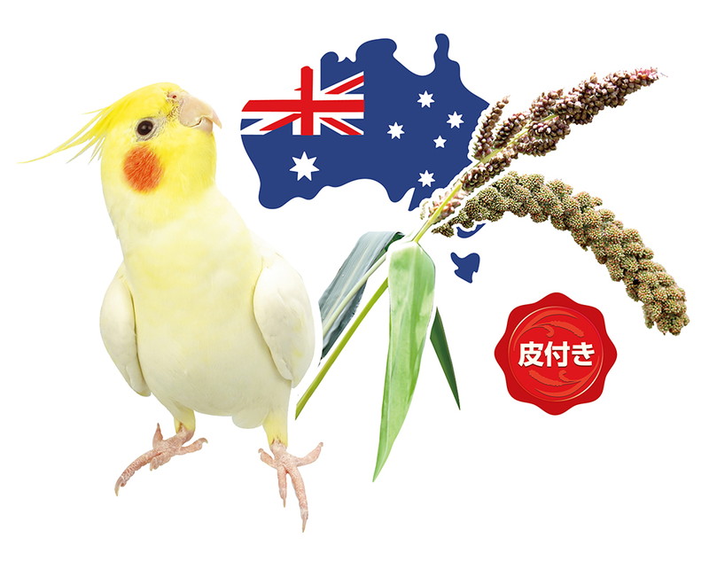 高品質なオーストラリア産皮付きヒエ、アワをベースに、18種類のシード(種子)を、オカメインコや中型インコ用に厳選配合しています。