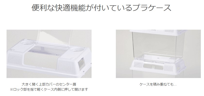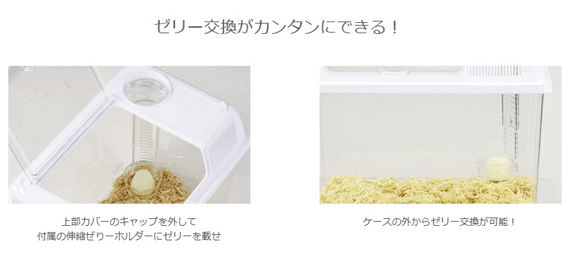 ケースの外から楽々お世話! Lサイズの多目的プラスチックケース 伸縮ゼリーホルダー付き