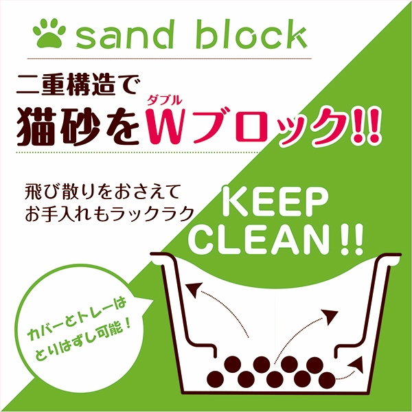 二重構造で猫砂をブロックします。大きめのネコちゃんに最適。