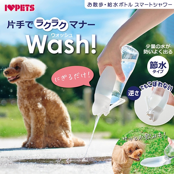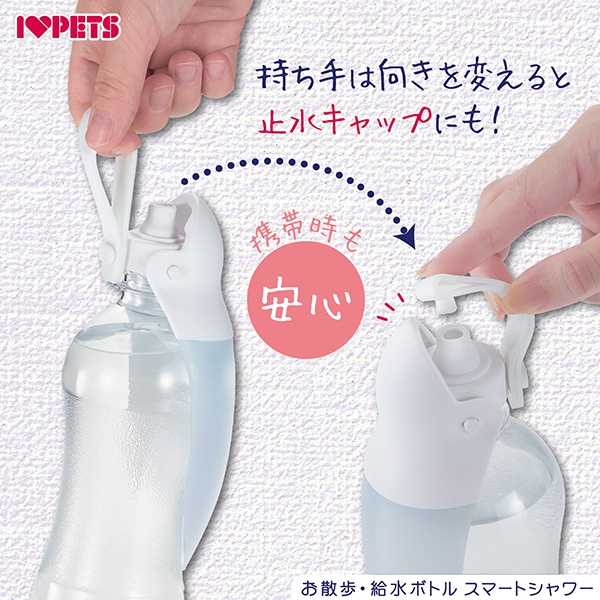 愛犬のお散歩に便利なマナーシャワーにもなる2way給水マナーボトル。 屋外での熱中症対策・水分補給に! 片手でにぎるだけ、少量の水が勢いよく出る節水式のマナーシャワー。 逆さにしても水はこぼれません。
