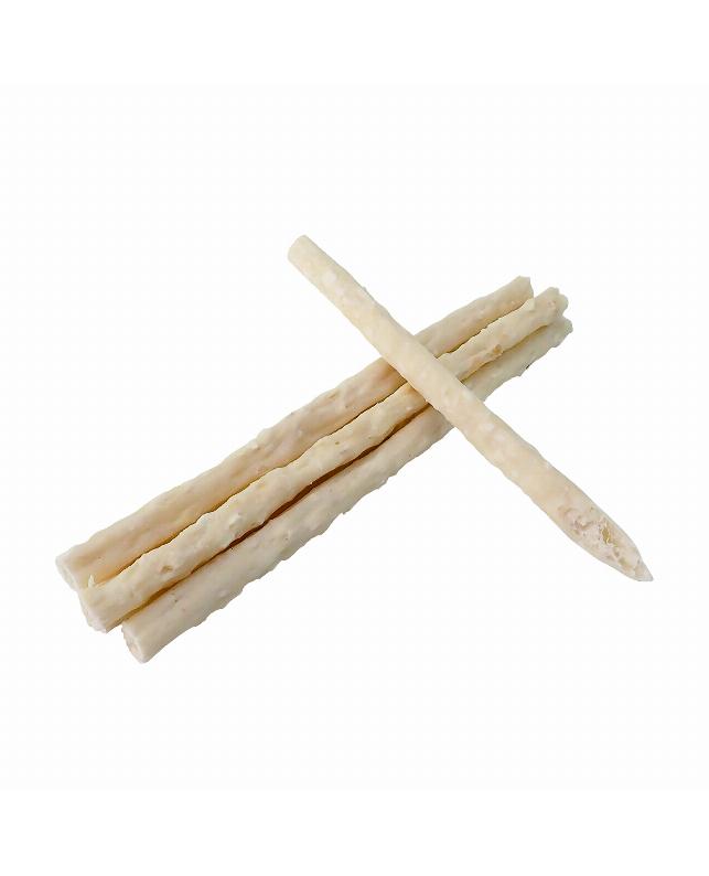 鶏ササミと牛皮を練り混ぜ、ほどよい堅さにしました。保存料・着色料・発色剤・酸化防止剤無添加!