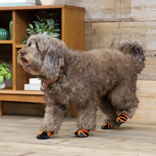 足をぴったり包み込む、巻いて履くタビ型の犬の靴